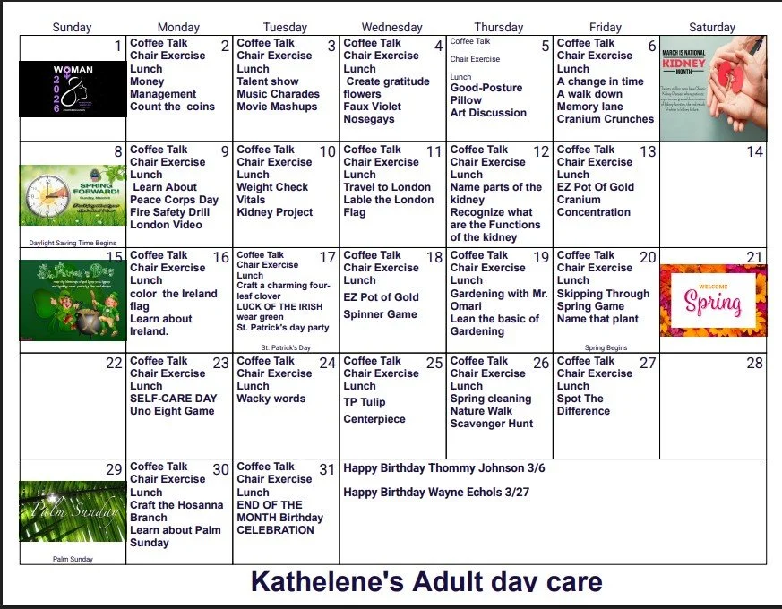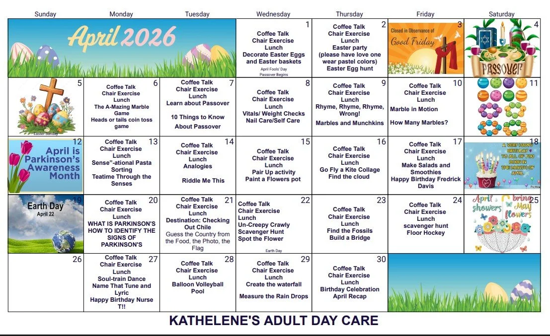 Kathelene’s provides a wide range of activities and services. Our programs are tailor made to the interests and needs of our senior community, encompassing all abilities in an attempt to engage the body as well as the mind. Our caterer provides delicious and nutritious food and a rotating menu that diversifies meals.